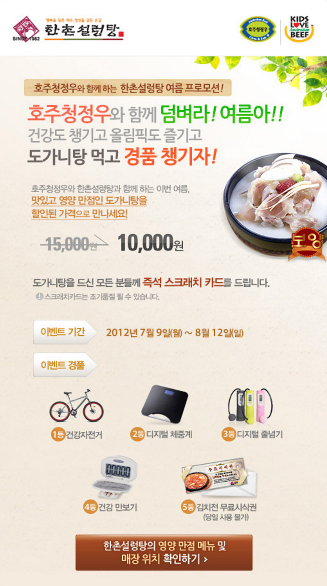 호주청정우와 함께하는 한촌설렁탕 여름 프로모션