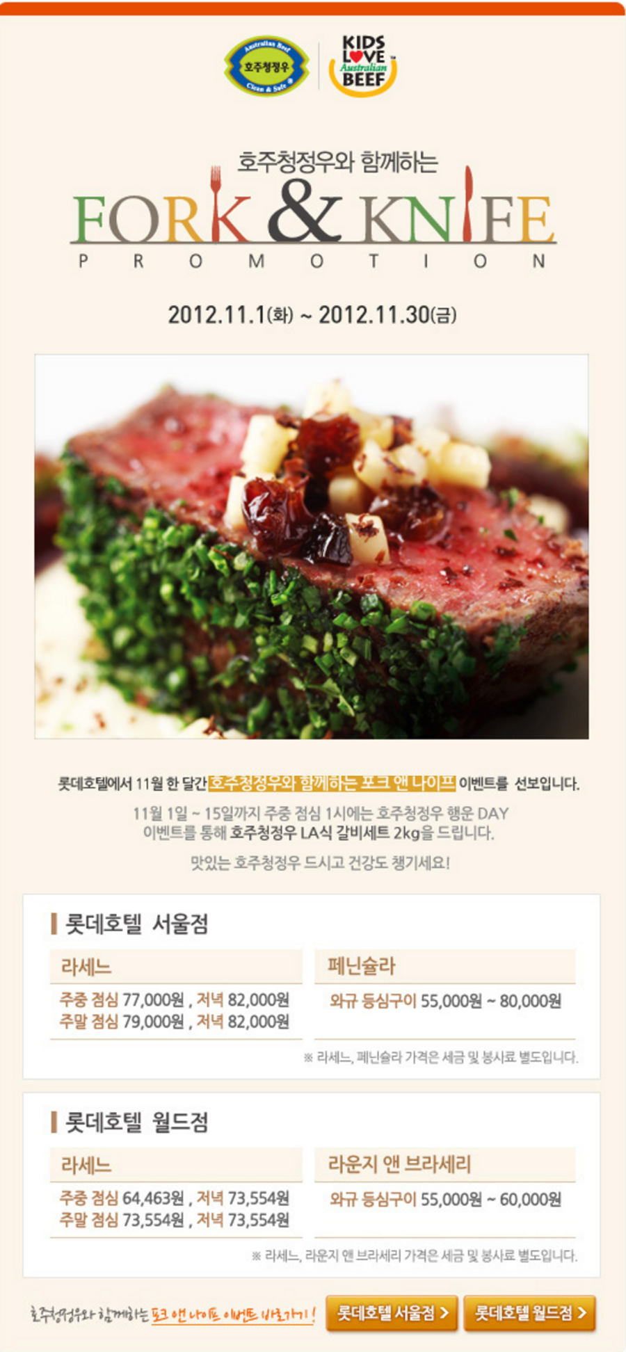 호주청정우와 함께하는 롯데호텔 포크앤나이프 프로모션